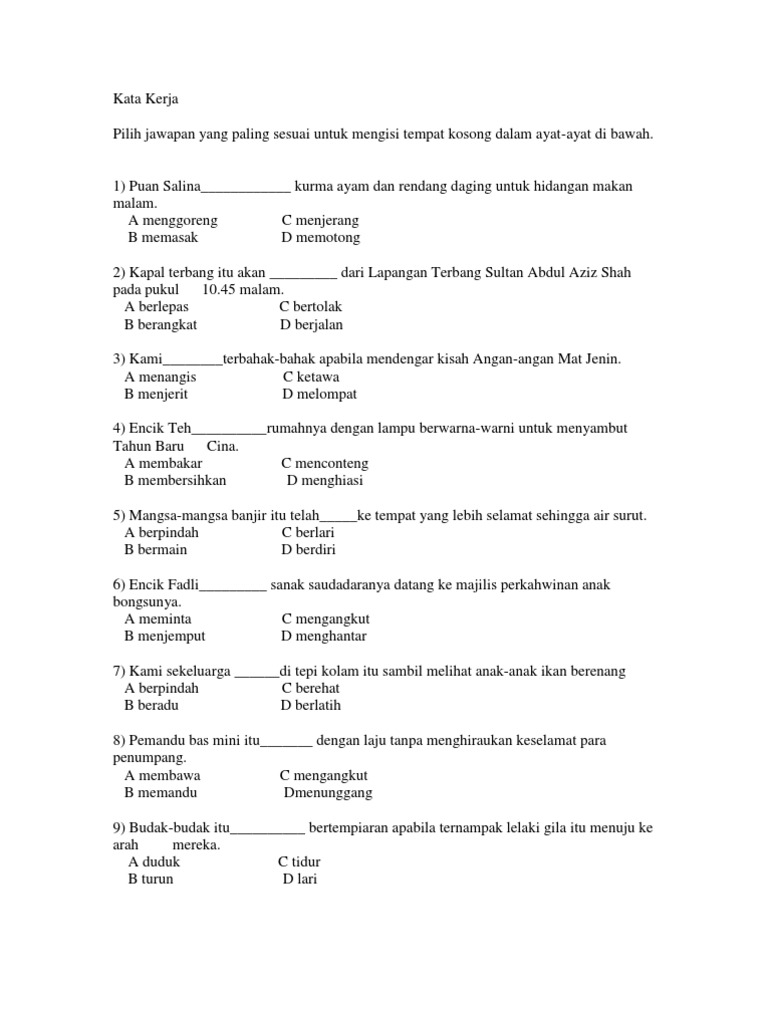 Latihan 1 Kata Nama Latihan 2 Kata Ganti Nama Latihan 3 Kata Kerja Transitif Latihan 4 Kata Kerja Tak Malay Language Exam Papers Grammar And Vocabulary